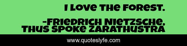 "Friedrich Nietzsche, Thus Spoke Zarathustra Quotes." Quoteslyfe.com, 2025. Sun. 07 Dec. 2025. <https://www.quoteslyfe.com/quote/I-love-the-forest-72548>.