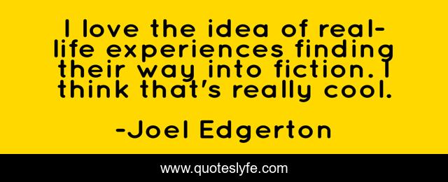 This page presents the quote "I love the idea of real-life experiences finding their way into fiction. I think that's really cool.". Author of this quote is Joel Edgerton. This quote is about finding, love, think, affection,.