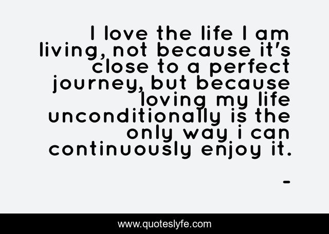 This page presents the quote "I love the life I am living, not because it's close to a perfect journey, but because loving my life unconditionally is the only way i can continuously enjoy it.". Author of this quote is . This quote is about a-perfect-journey, enjoying-your-life, edmond-mbiaka, loving-your-life-unconditionally, love-your-life-unconditionally, loving-my-life, i-love-my-life,.