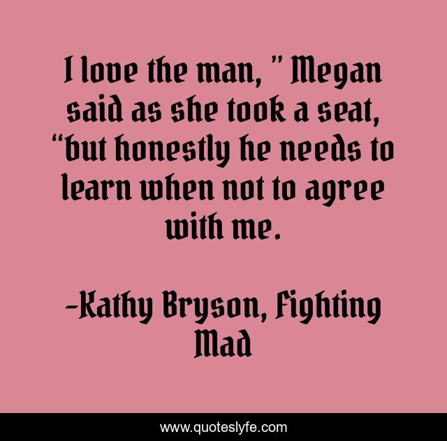 "Kathy Bryson, Fighting Mad Quotes." Quoteslyfe.com, 2025. Sat. 06 Dec. 2025. <https://www.quoteslyfe.com/quote/I-love-the-man-Megan-said-as-82629>.