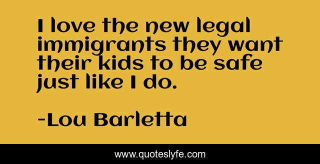 This page presents the quote "I love the new legal immigrants they want their kids to be safe just like I do.". Author of this quote is Lou Barletta. This quote is about immigrants, love, affection,.