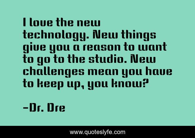 "Dr. Dre Quotes." Quoteslyfe.com, 2025. Sat. 06 Dec. 2025. <https://www.quoteslyfe.com/quote/I-love-the-new-technology-New-things-319742>.