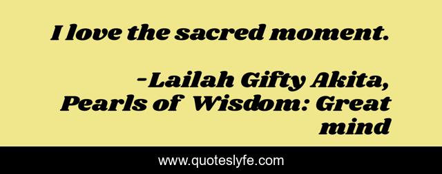 "Lailah Gifty Akita, Pearls of Wisdom: Great mind Quotes." Quoteslyfe.com, 2025. Sun. 07 Dec. 2025. <https://www.quoteslyfe.com/quote/I-love-the-sacred-moment-92814>.