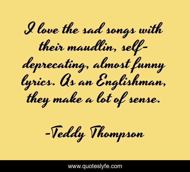 This page presents the quote "I love the sad songs with their maudlin, self-deprecating, almost funny lyrics. As an Englishman, they make a lot of sense.". Author of this quote is Teddy Thompson. This quote is about funny, comedy, love, englishman, affection,.