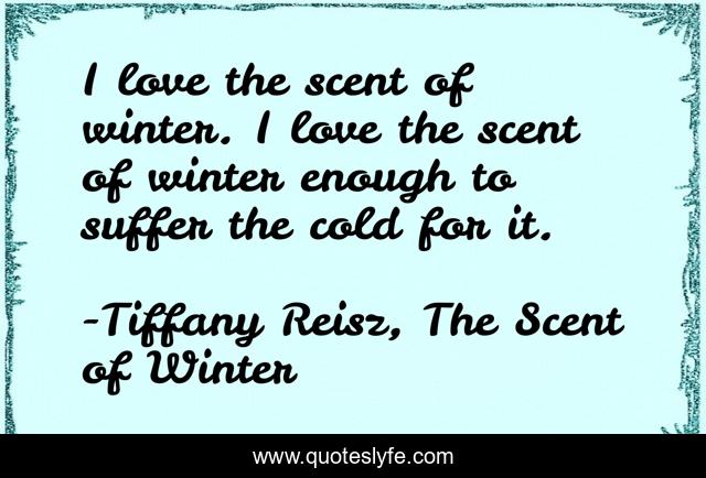 "Tiffany Reisz, The Scent of Winter Quotes." Quoteslyfe.com, 2025. Tue. 09 Dec. 2025. <https://www.quoteslyfe.com/quote/I-love-the-scent-of-winter-I-242595>.