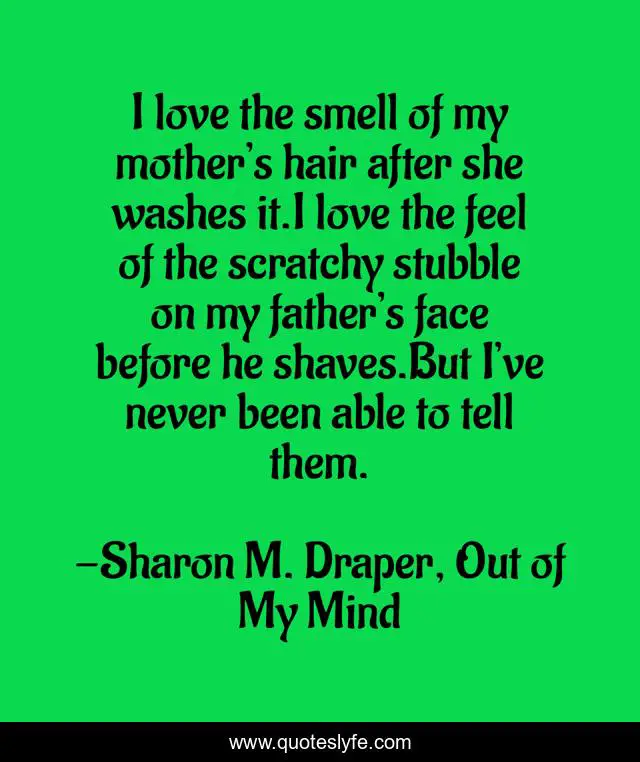 "Sharon M. Draper, Out of My Mind Quotes." Quoteslyfe.com, 2025. Sun. 07 Dec. 2025. <https://www.quoteslyfe.com/quote/I-love-the-smell-of-my-mother-168893>.