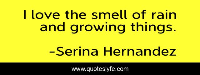 This page presents the quote "I love the smell of rain and growing things.". Author of this quote is Serina Hernandez. This quote is about spring, life, growth, rain,.
