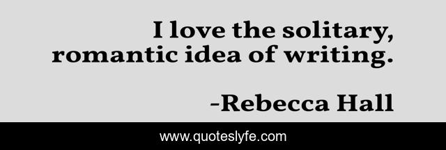 This page presents the quote "I love the solitary, romantic idea of writing.". Author of this quote is Rebecca Hall. This quote is about love, idea, affection, writing,.