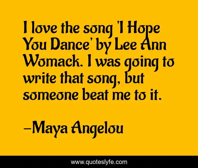 This page presents the quote "I love the song 'I Hope You Dance' by Lee Ann Womack. I was going to write that song, but someone beat me to it.". Author of this quote is Maya Angelou. This quote is about dance, me, love, affection,.