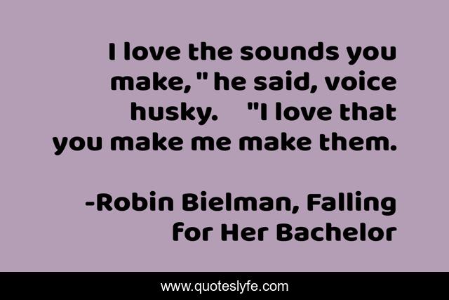 This page presents the quote "I love the sounds you make, " he said, voice husky. "I love that you make me make them.". Author of this quote is Robin Bielman, Falling for Her Bachelor. .