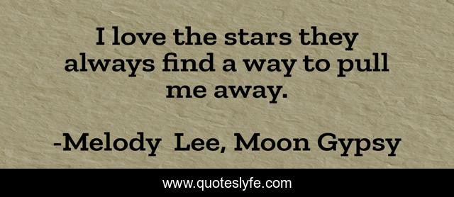 This page presents the quote "I love the stars they always find a way to pull me away.". Author of this quote is Melody Lee, Moon Gypsy. This quote is about universe, stars, love, poetry, affection,.