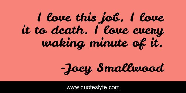 This page presents the quote "I love this job. I love it to death. I love every waking minute of it.". Author of this quote is Joey Smallwood. .