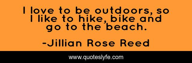 This page presents the quote "I love to be outdoors, so I like to hike, bike and go to the beach.". Author of this quote is Jillian Rose Reed. This quote is about bike, beach, outdoors,.