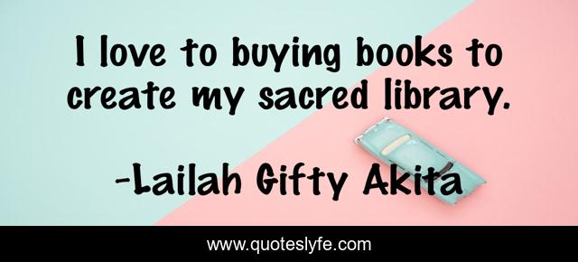 This page presents the quote "I love to buying books to create my sacred library.". Author of this quote is Lailah Gifty Akita. This quote is about lailah-gifty-akita-affirmations, inspirational, book-lovers, self-education, library, learning, enthusiasm,.