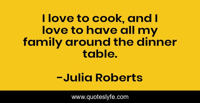 This page presents the quote "I love to cook, and I love to have all my family around the dinner table.". Author of this quote is Julia Roberts. This quote is about love, dinner, dinner table, affection,.