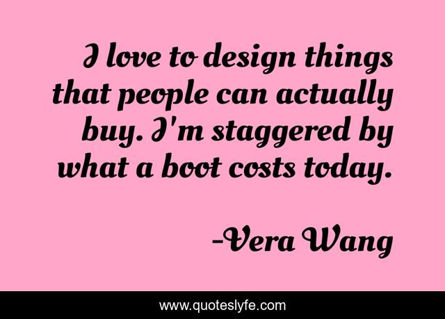 This page presents the quote "I love to design things that people can actually buy. I'm staggered by what a boot costs today.". Author of this quote is Vera Wang. This quote is about love, today, affection, people,.