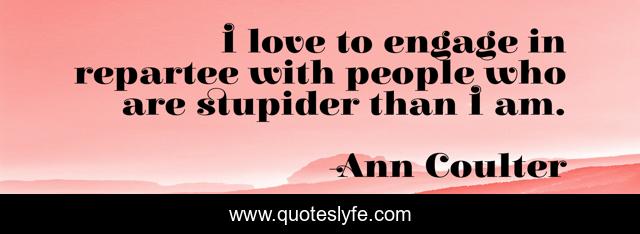 This page presents the quote "I love to engage in repartee with people who are stupider than I am.". Author of this quote is Ann Coulter. .