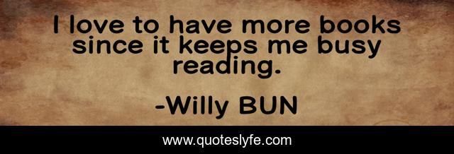 This page presents the quote "I love to have more books since it keeps me busy reading.". Author of this quote is Willy BUN. .