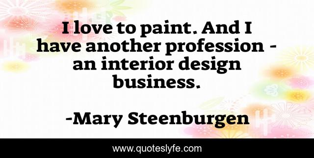 This page presents the quote "I love to paint. And I have another profession - an interior design business.". Author of this quote is Mary Steenburgen. This quote is about paint, love, business, affection,.