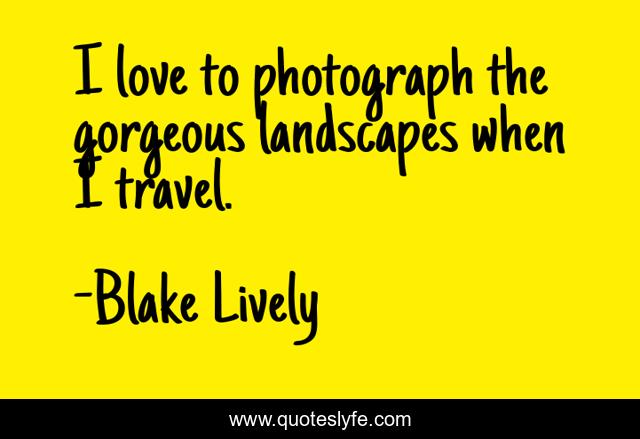 This page presents the quote "I love to photograph the gorgeous landscapes when I travel.". Author of this quote is Blake Lively. This quote is about love, photograph, landscapes, affection,.