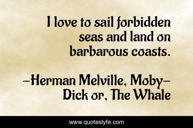 "Herman Melville, Moby-Dick or, The Whale Quotes." Quoteslyfe.com, 2025. Sat. 06 Dec. 2025. <https://www.quoteslyfe.com/quote/I-love-to-sail-forbidden-seas-and-151733>.