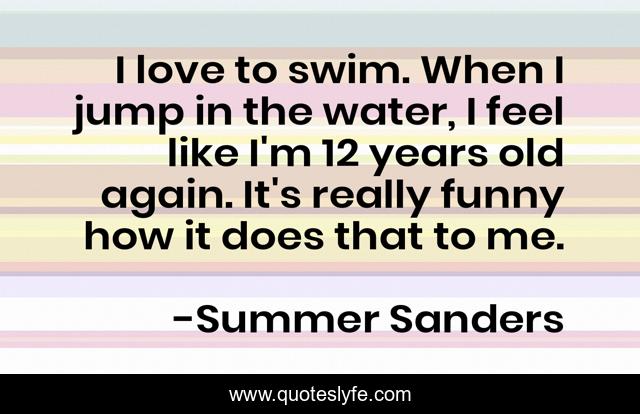 This page presents the quote "I love to swim. When I jump in the water, I feel like I'm 12 years old again. It's really funny how it does that to me.". Author of this quote is Summer Sanders. This quote is about water, me, love, affection,.