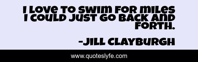 This page presents the quote "I love to swim for miles I could just go back and forth.". Author of this quote is Jill Clayburgh. This quote is about swim, love, back, affection,.