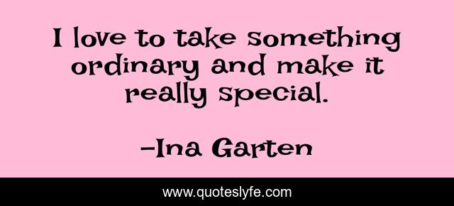 This page presents the quote "I love to take something ordinary and make it really special.". Author of this quote is Ina Garten. This quote is about special, love, something, affection,.