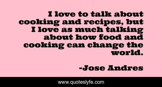 This page presents the quote "I love to talk about cooking and recipes, but I love as much talking about how food and cooking can change the world.". Author of this quote is Jose Andres. This quote is about love, change, affection,.