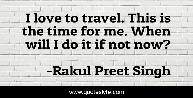 This page presents the quote "I love to travel. This is the time for me. When will I do it if not now?". Author of this quote is Rakul Preet Singh. This quote is about me, love, affection, time,.