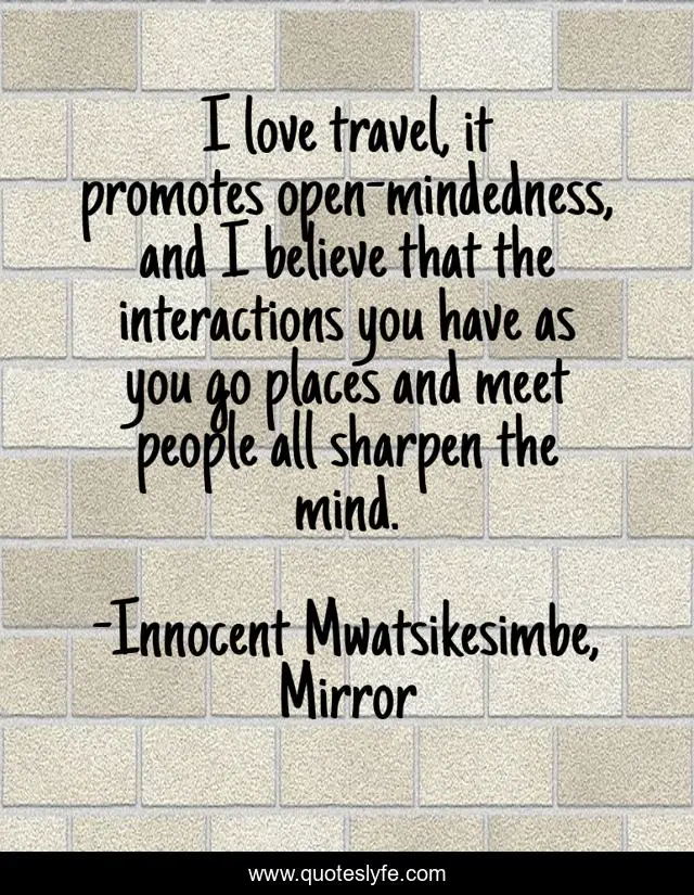 "Innocent Mwatsikesimbe, Mirror Quotes." Quoteslyfe.com, 2025. Mon. 08 Dec. 2025. <https://www.quoteslyfe.com/quote/I-love-travel-it-promotes-open-mindedness-108233>.
