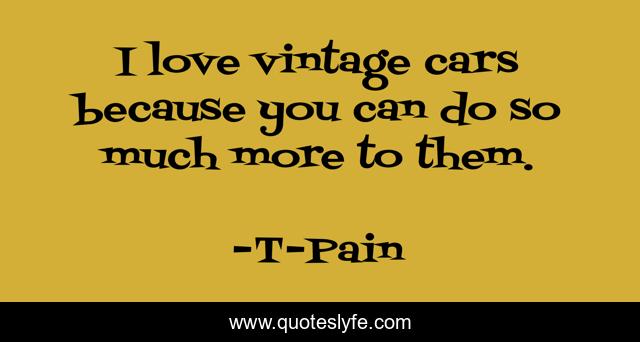 This page presents the quote "I love vintage cars because you can do so much more to them.". Author of this quote is T-Pain. This quote is about vintage, love, affection,.