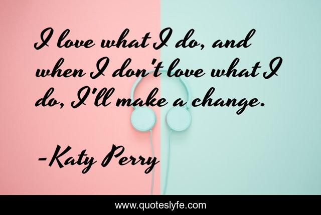 This page presents the quote "I love what I do, and when I don't love what I do, I'll make a change.". Author of this quote is Katy Perry. This quote is about i love, make, love, affection,.