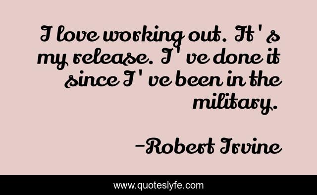 This page presents the quote "I love working out. It's my release. I've done it since I've been in the military.". Author of this quote is Robert Irvine. This quote is about military, love, working, affection,.