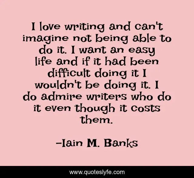 "Iain M. Banks Quotes." Quoteslyfe.com, 2025. Mon. 08 Dec. 2025. <https://www.quoteslyfe.com/quote/I-love-writing-and-can-t-imagine-157351>.