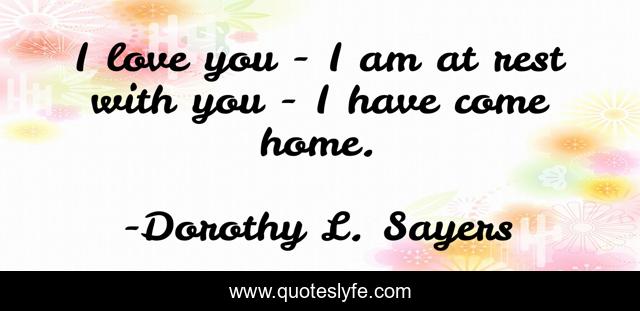 This page presents the quote "I love you - I am at rest with you - I have come home.". Author of this quote is Dorothy L. Sayers. This quote is about i love you, home, romantic,.