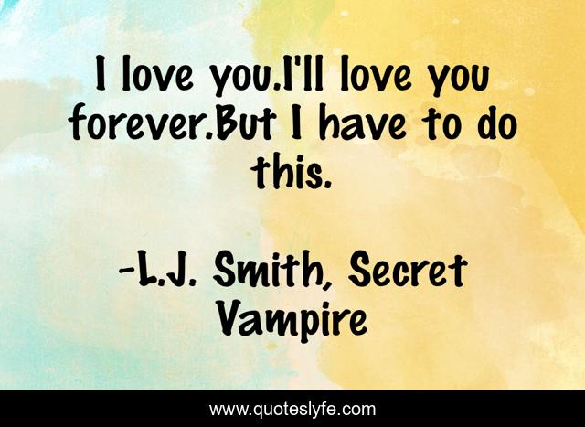"L.J. Smith, Secret Vampire Quotes." Quoteslyfe.com, 2025. Sat. 06 Dec. 2025. <https://www.quoteslyfe.com/quote/I-love-you-I-ll-love-you-188180>.