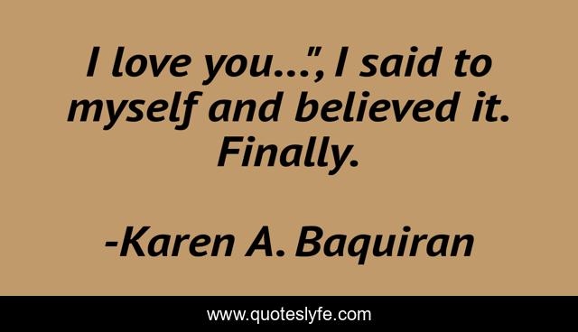 This page presents the quote "I love you...", I said to myself and believed it. Finally.". Author of this quote is Karen A. Baquiran. This quote is about self-love, love, love-me, love-yourself, loveyourselfmovement, affection,.