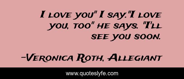 This page presents the quote "I love you" I say."I love you, too" he says. "I'll see you soon.". Author of this quote is Veronica Roth, Allegiant. This quote is about four, love, tris, affection,.