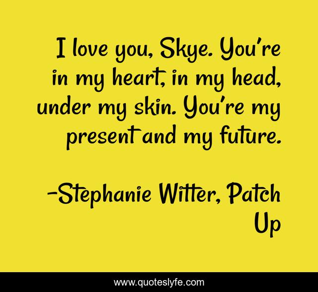 "Stephanie Witter, Patch Up Quotes." Quoteslyfe.com, 2025. Tue. 09 Dec. 2025. <https://www.quoteslyfe.com/quote/I-love-you-Skye-You-re-in-155366>.