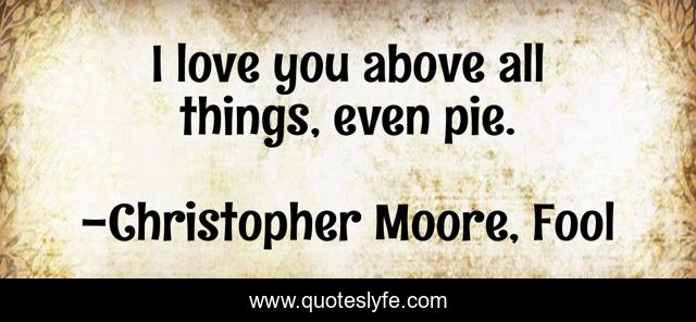 This page presents the quote "I love you above all things, even pie.". Author of this quote is Christopher Moore, Fool. .