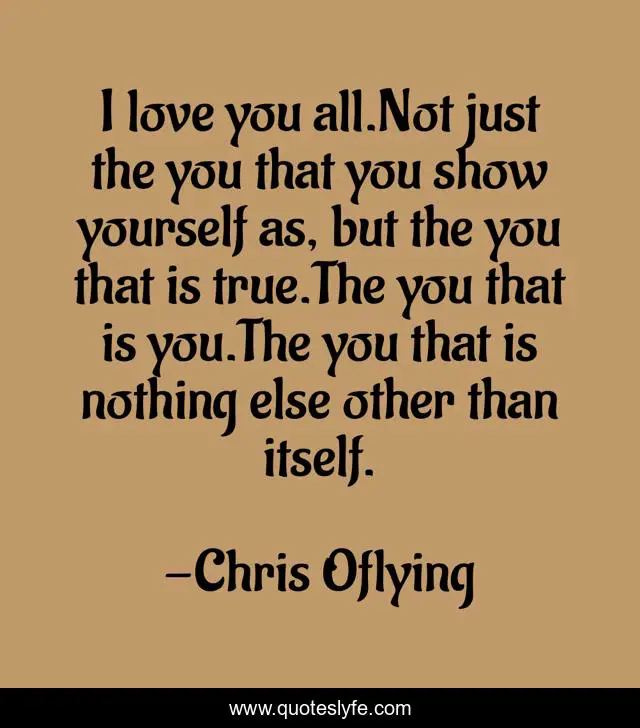 "Chris Oflying Quotes." Quoteslyfe.com, 2025. Sat. 06 Dec. 2025. <https://www.quoteslyfe.com/quote/I-love-you-all-Not-just-the-241245>.
