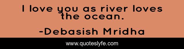 This page presents the quote "I love you as river loves the ocean.". Author of this quote is Debasish Mridha. This quote is about life, love, knowledge, inspirational, intelligence, philosophy, wisdom, quotes, affection,.