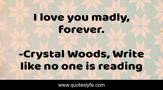 "Crystal Woods, Write like no one is reading Quotes." Quoteslyfe.com, 2025. Tue. 09 Dec. 2025. <https://www.quoteslyfe.com/quote/I-love-you-madly-forever-171740>.