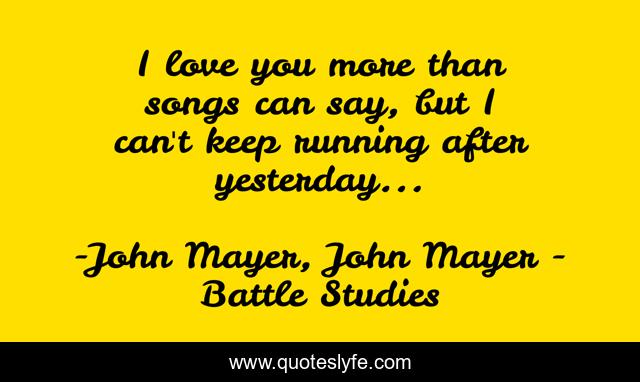 This page presents the quote "I love you more than songs can say, but I can't keep running after yesterday...". Author of this quote is John Mayer, John Mayer - Battle Studies. This quote is about love, goodbye, affection,.