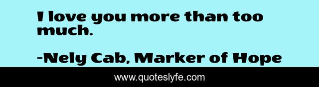"Nely Cab, Marker of Hope Quotes." Quoteslyfe.com, 2025. Sat. 06 Dec. 2025. <https://www.quoteslyfe.com/quote/I-love-you-more-than-too-much-82203>.
