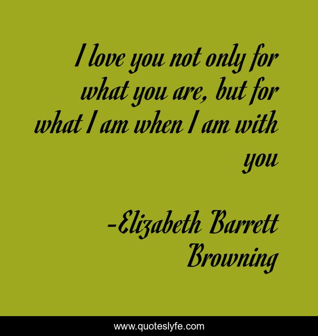 This page presents the quote "I love you not only for what you are, but for what I am when I am with you". Author of this quote is Elizabeth Barrett Browning. This quote is about love, affection,.