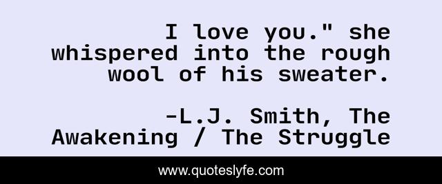 This page presents the quote "I love you." she whispered into the rough wool of his sweater.". Author of this quote is L.J. Smith, The Awakening / The Struggle. This quote is about and, the, awakening, struggle,.