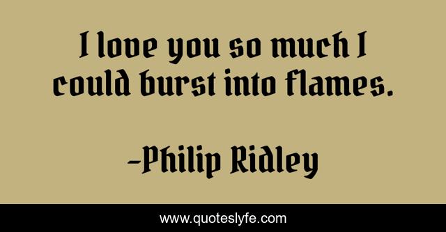 This page presents the quote "I love you so much I could burst into flames.". Author of this quote is Philip Ridley. This quote is about extremity, fire, love, affection,.