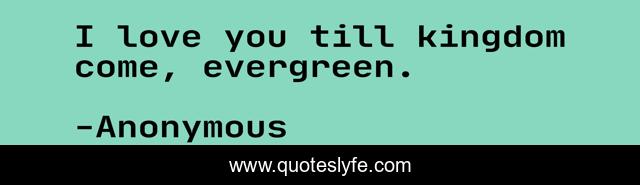 This page presents the quote "I love you till kingdom come, evergreen.". Author of this quote is Anonymous. This quote is about heartache, unattainable-love, lovers, love, lost-love, affection,.